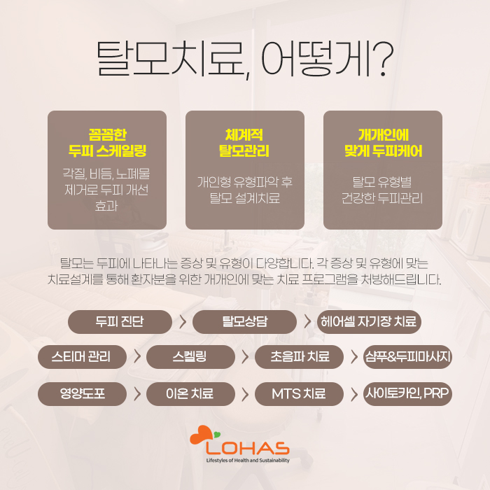 여의도탈모로 인해 고생하고 계신 분들이 많습니다. 쉽게 나을 수 있는 질환이면 좋으련만 그렇지 못해서 한숨만 나오시는 분들 많으실 텐데요. 이런 경우 혼자서 치료하려고 할 것이 아니라 자세히 진단을 받고 자신에게 맞는 관리 및 치료 방법에 대해 알아보도록 해야 합니다.