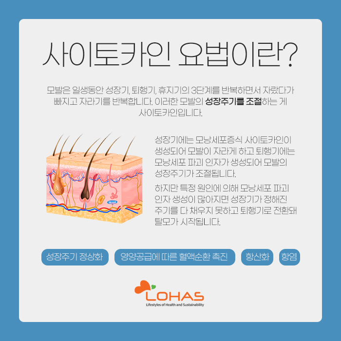 그리고 영등포탈모병원에서 사이토카인 요법이나 혈액 줄기세포에 대해 문의주시는 분들이 많은데요. 이 중 사이토카인 요법에 대해 먼저 말씀을 드려보자면 사이토카인은 모발의 성장주기를 조절해 주는 것을 말한답니다.