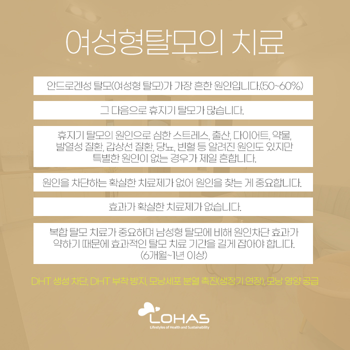 그 이유는 여성이 탈모를 유발시키는 남성 호르몬보다도 여성 호르몬인 에스트로겐을 더 많이 갖고 있어서인데요. 여성의 전두조직에는 여성에게 우세한 아로마타제의 활성도가 매우 높은데, 이러한 아로마타제는 DHT를 상대적으로 잘 억제시키는데 도움을 준답니다.